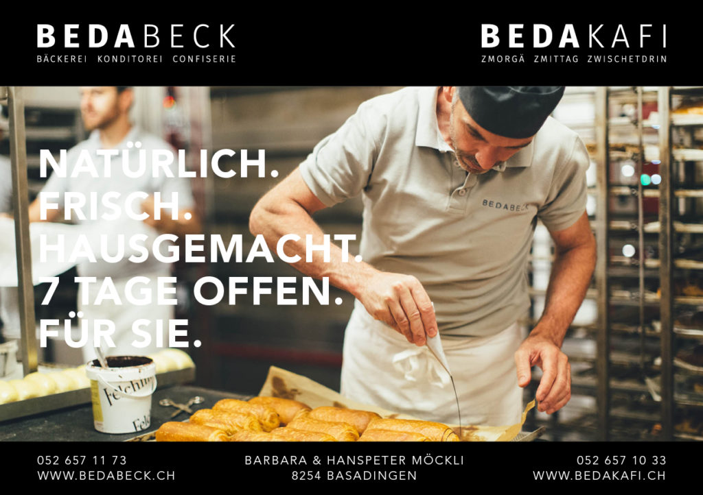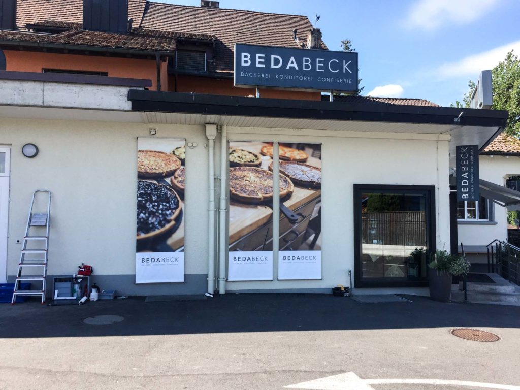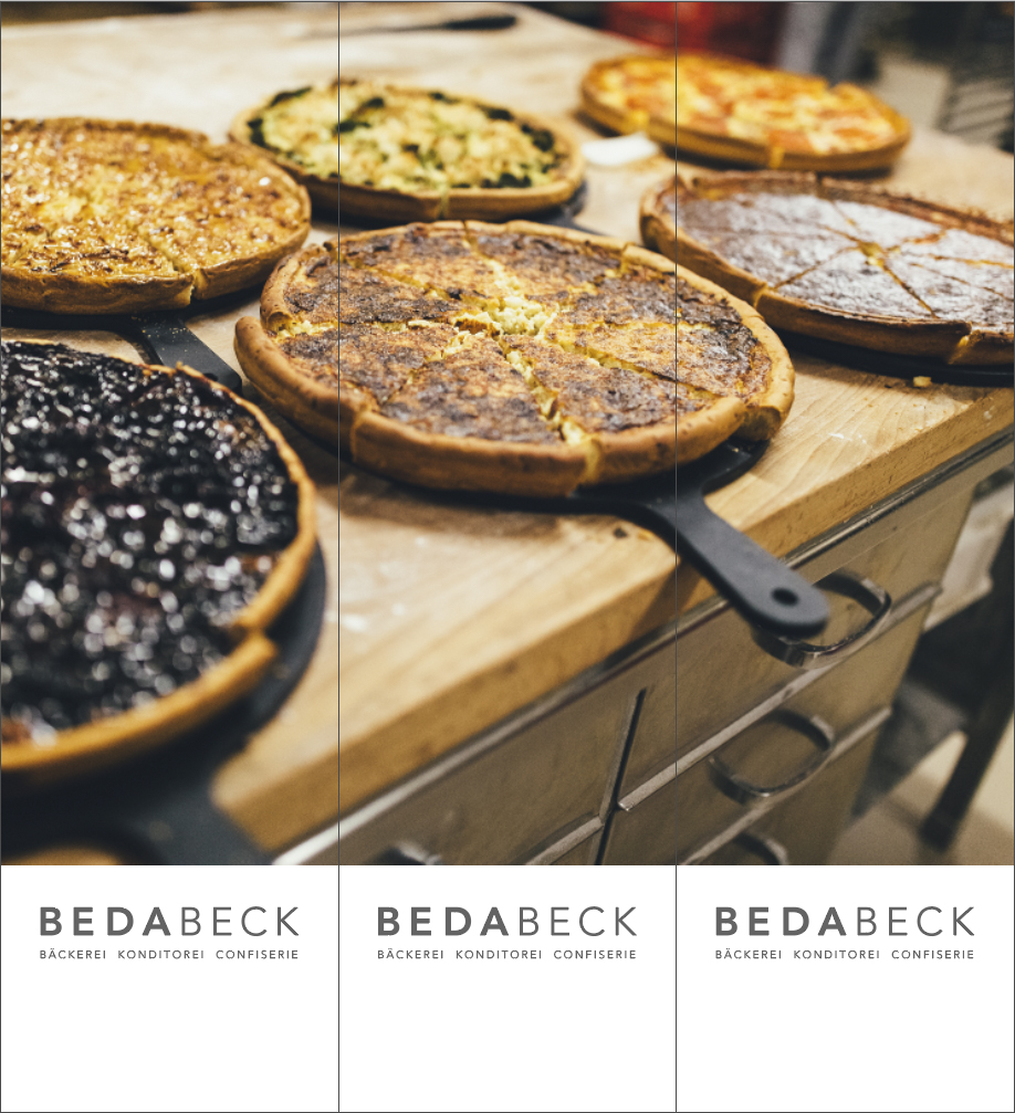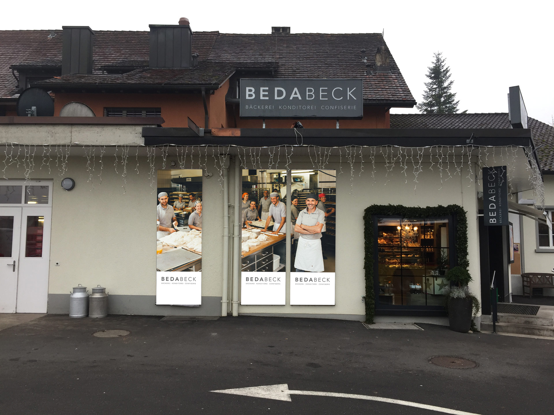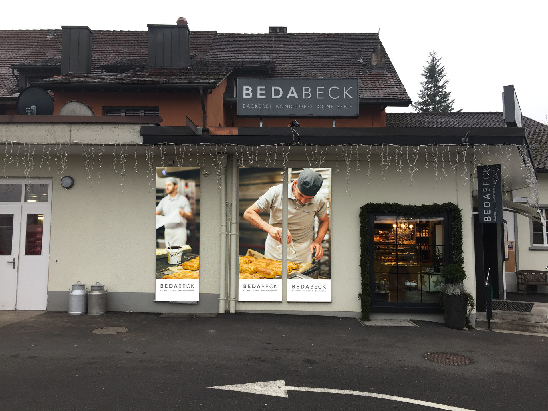 Basierend auf der neuen Bildwelt und dem modernen Schriftbild entstand ein visuell starkes Fundament für vielfältige Anwendungen. Gestaltet wurden Fassadenbanner, Inserate und Etiketten – alle mit dem Ziel, die Marke BEDA BECK visuell zu stärken und ihren unverwechselbaren Charakter zu transportieren.
