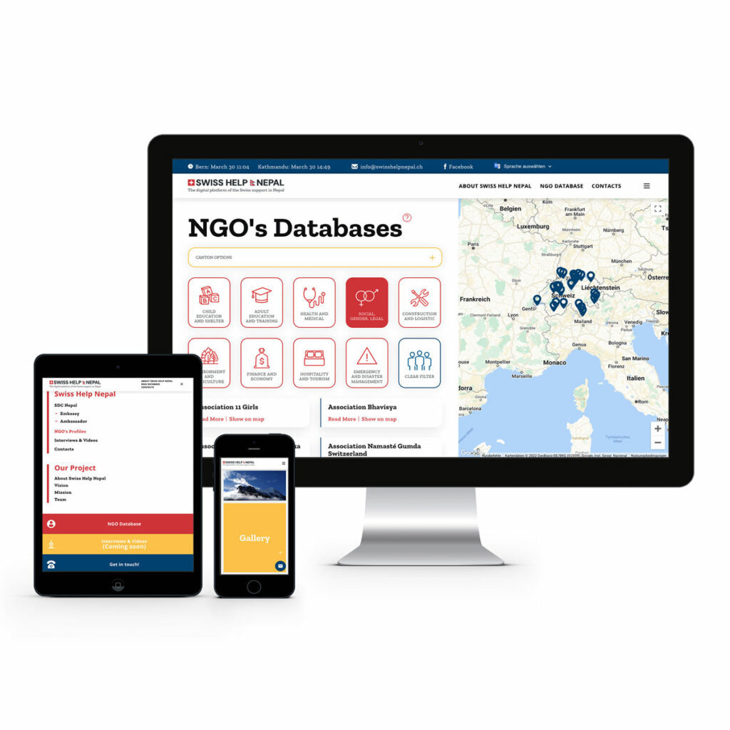 Kernstück der Website ist eine individuell programmierte NGO-Datenbank, die durch intuitive Bedienung, strukturierte Navigation und durchdachte Kategorisierung überzeugt. Ergänzt wird diese durch einen multimedialen Bereich mit Videos und Interviews, in dem aktive NGOs ihre Arbeit in Nepal vorstellen.